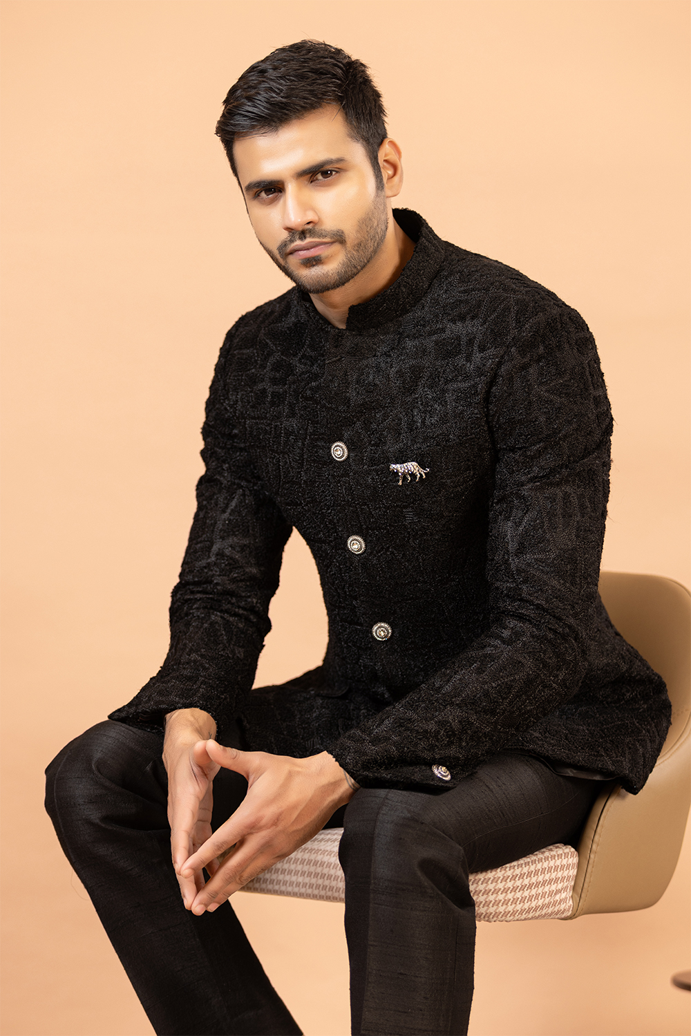Your wardrobe should reflect your refined taste and this blended rayon ensemble does just that.