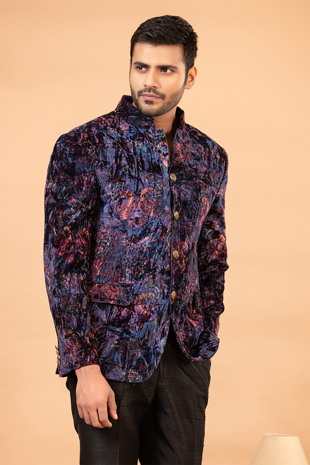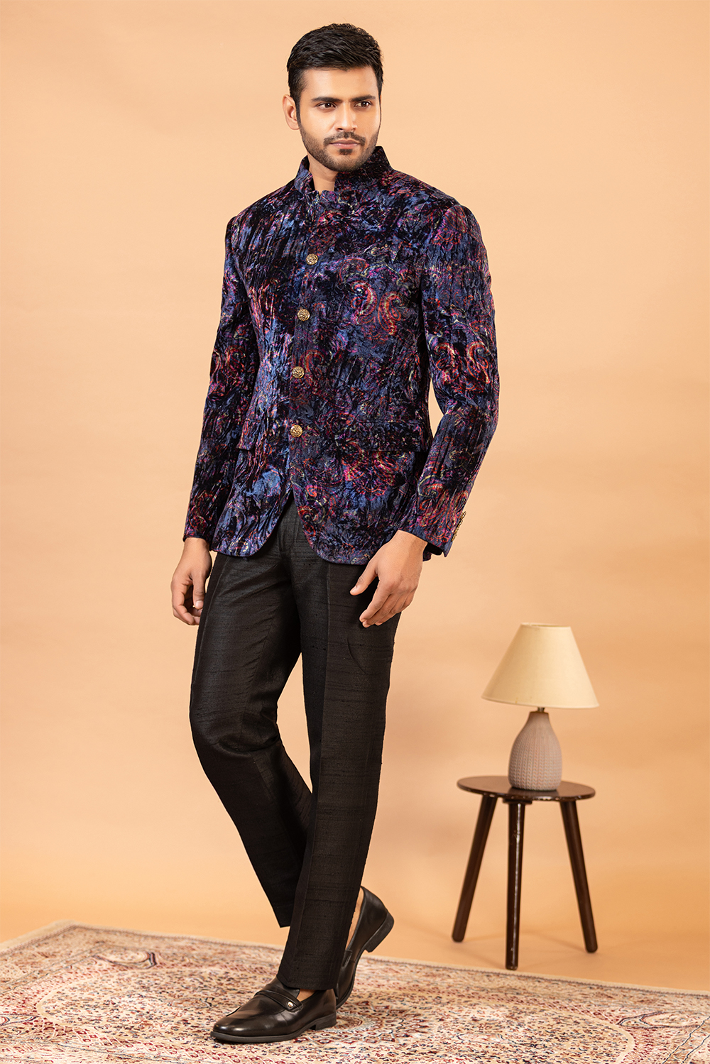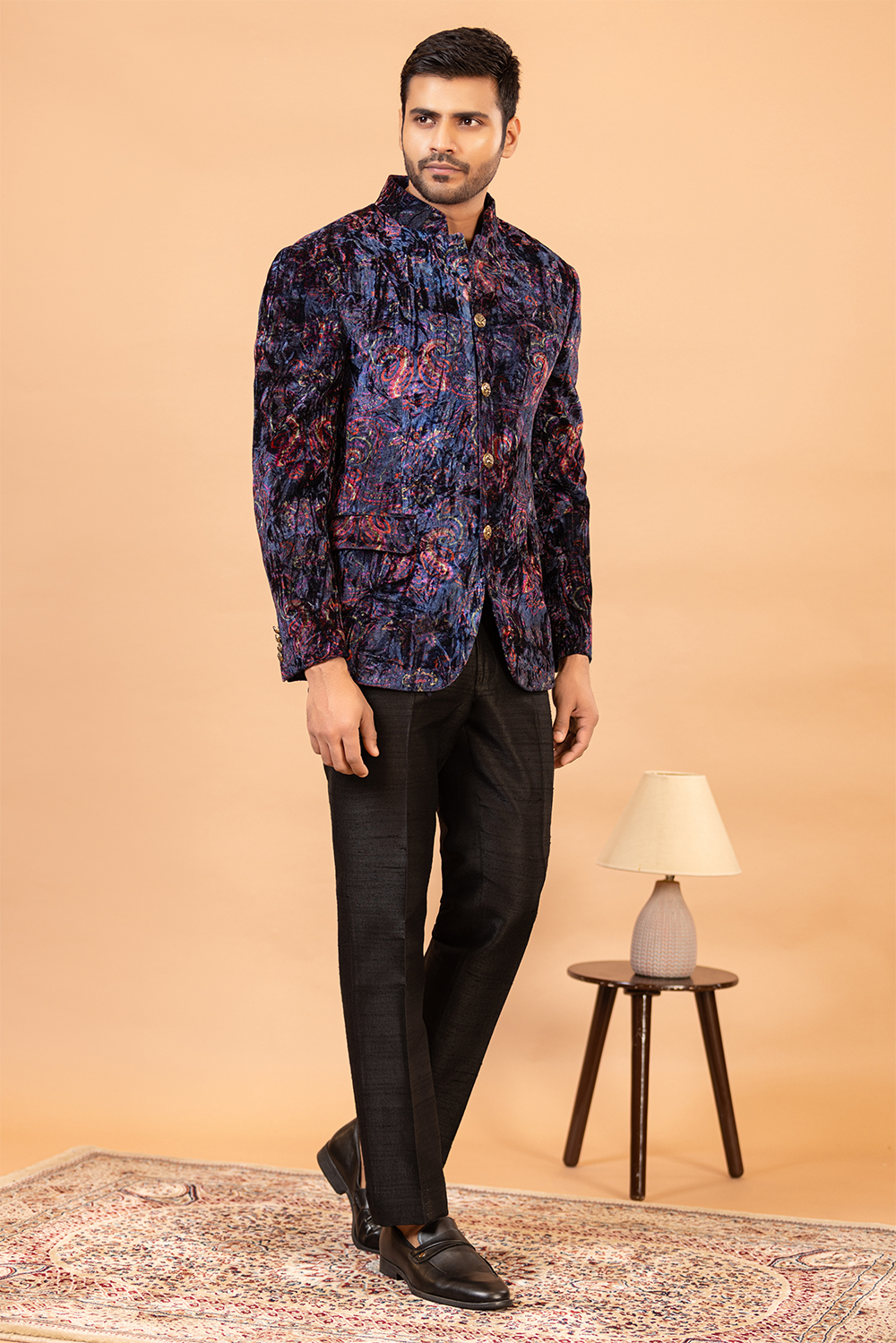 Draped in our Black Exquisiteness Indo Western attire, every occasion will seem like a grand celebration. With its sleek design and quality Blended Rayon fabric, this ensemble provides both comfort and style. It includes an Indo Western Jacket and Pant, making it a perfect choice for any festive event. The rich black hue adds to the outfit’s overall charm, making you the center of attention wherever you go.
